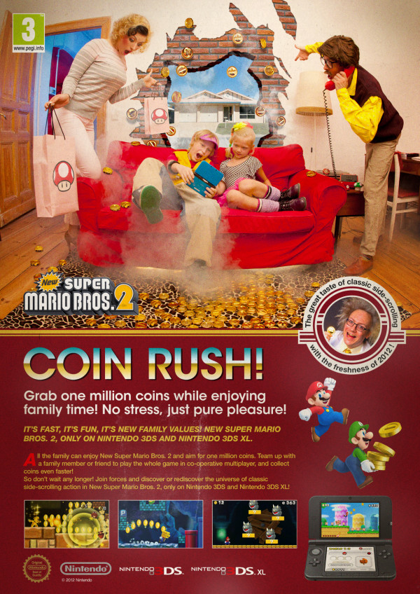 These aren’t real ads – they’re made by Nintendo of Europe to promote New Super Mario Bros. 2. That doesn’t make them any less neat, however!