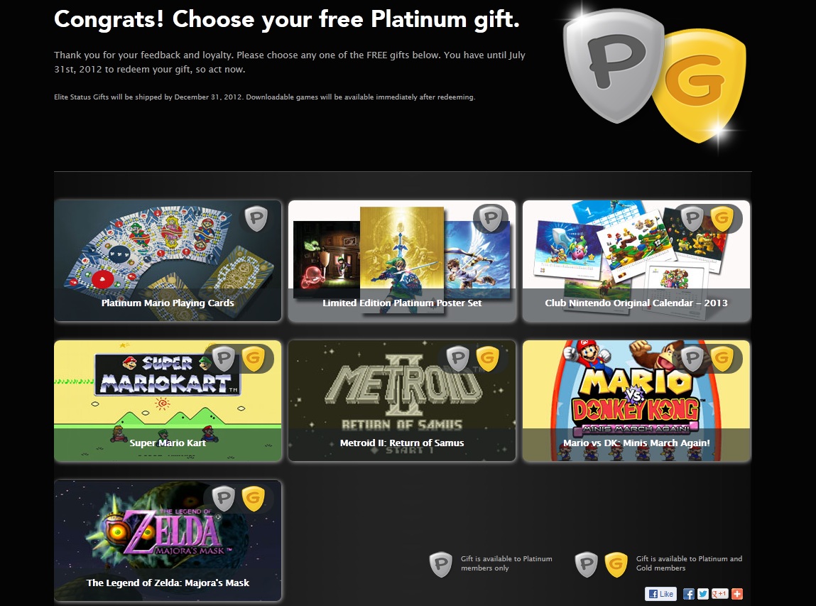 Above are the rewards for those who reached Gold/Platinum on Club Nintendo this year.