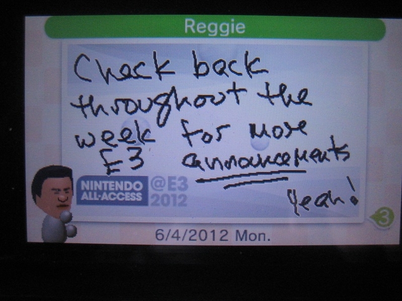 Nintendo has a habit of sending out Swapnotes about its big events. The company’s E3 2012 media briefing is no different.