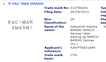 Namco Bandai registered a new trademark for “Pac-Man Smash” in Europe. It’s unclear if the name pertains to a new game or something else entirely.