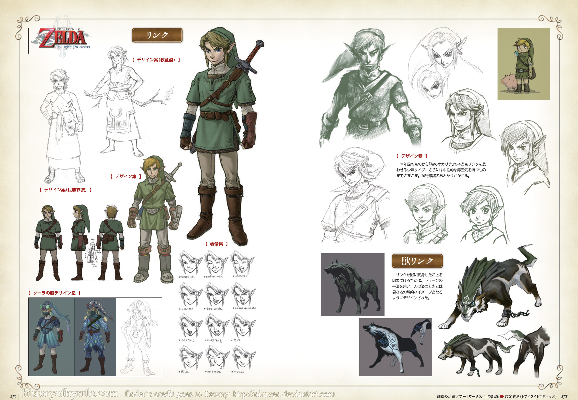 One page shows a variety of concept art created for Twilight Princess’ Midna – you might be surprised with some of the designs. There are other new pages included as well (and some old ones that are much, much larger than the images added to our initial post about Hyrule Historia). Zelda fans will most definitely want to take a look at the gallery above.
