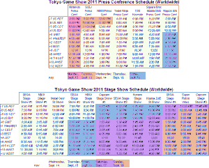 Although the 2011 Tokyo Game Show won’t technically begin until Thursday, companies have conferences lined up starting tonight. We don’t know which publishers and developers will have Nintendo-related announcements, but the schedule above (created by the kind folks on NeoGAF) should come in handy. It’s possible that the Namco Bandai event will bring us some news for example, though we simply won’t know until it’s over.