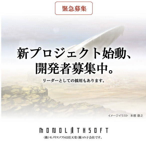 Xenoblade developer Monolith Soft is starting to make a new game. The company just opened a page on their website which states that workers are needed. Monolith is looking to fill positions such as programmer, 2D designer, planner, effect designer, 3DCG designer and motion designer.