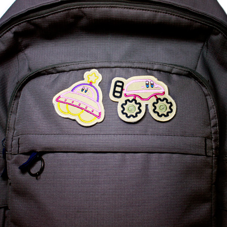 Inspired by the game, Kirby’s Epic Yarn, this collectible patch set features Kirby in Saucer and Off-Roader form.