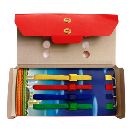 • Wrist strap colors: Yellow, red, blue, and green
