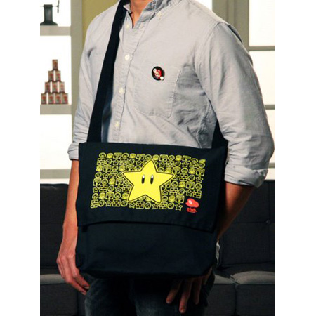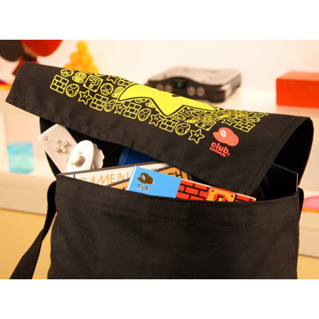 Ideal for carrying games, books, and much more, this durable and stylish messenger bag shows off a Club Nintendo exclusive design featuring Mario™ icons including Super Star!