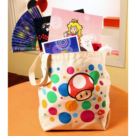 A fun and functional tote bag that features a silkscreened Super Mario™ Power Up Mushroom design exclusive to Club Nintendo. Use this environmentally-friendly bag to tote groceries, toys, games, or Wii Remote™ and Nunchuk™ controllers to a friend’s house!