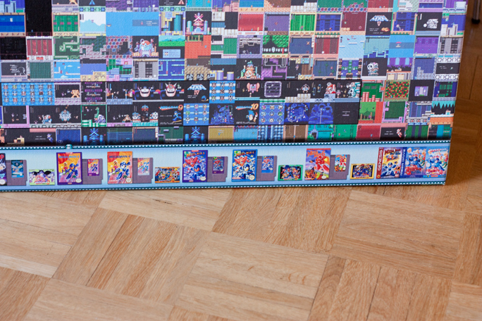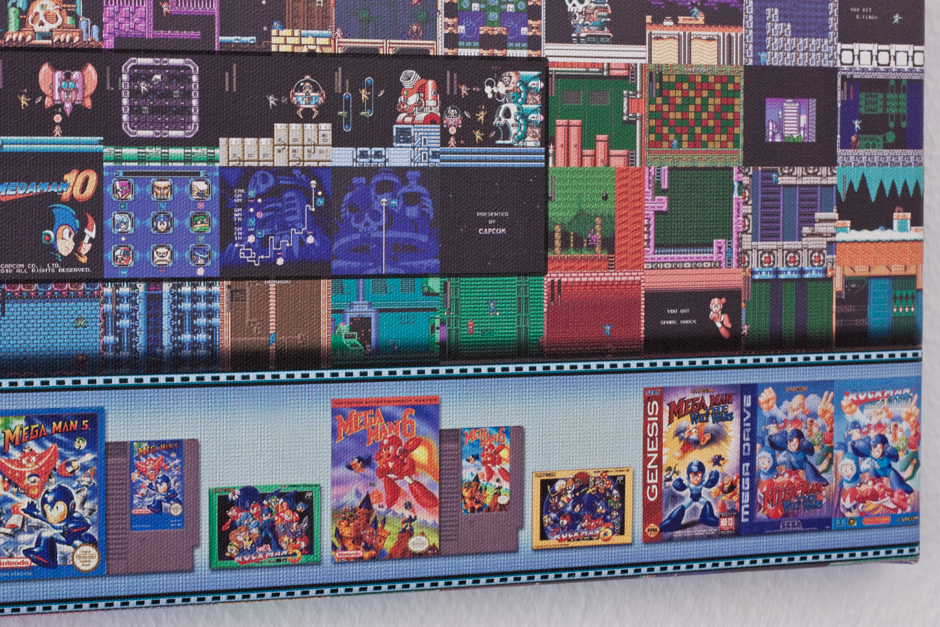 A fan has created a 120 x 109 cm Mega Man mosaic which possesses roughly 1,500 screenshots from the first six games in the series. Shots were captured during playthroughs and feature all levels from Mega Man 1 – 6. In addition, the artist worked on a gallery that contains Mega Man boxes/cartridges from every region. You can check out a description of the art below as well as a bunch of pictures.