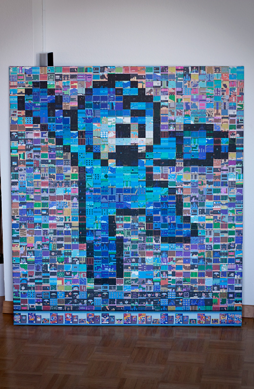 the idea was to have one screenshot for every pixel of the mega man sprite and then have the sprite surrounded by the remaining screenshots.