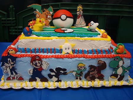 A few days ago, we showed you some Smash shoes. This time, we bring you a Brawl cake. A number of Brawl’s most popular characters can be seen on this delicious treat, including Pikachu and Kirby. The top portion of the cake seems to be a representation of the Pokemon stadium. I wonder if that Pikachu is edible…