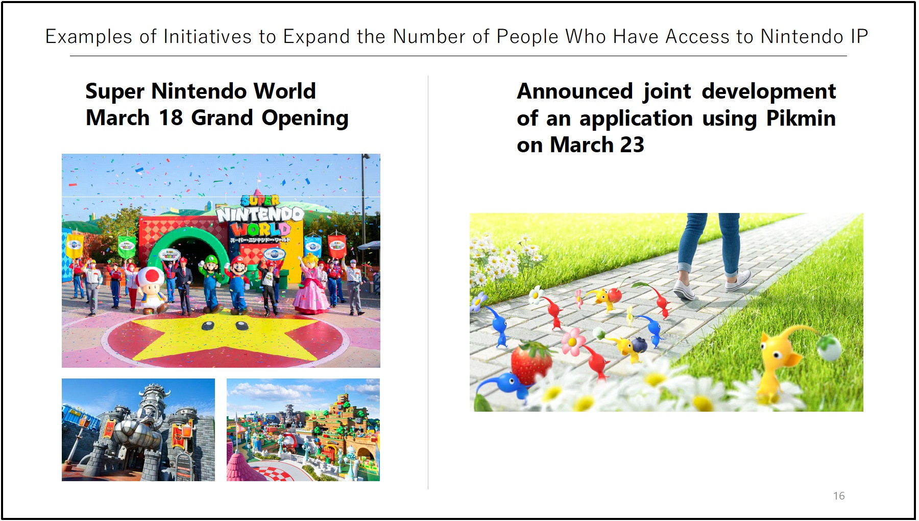 Super Nintendo World recently opened at Universal Studios Japan (though it was temporarily closed due an increase in coronavirus cases) and a new Pikmin app is in the works. The company also teased that it is “continuing to work on various other initiatives to expand the number of people who have access to Nintendo IP.”