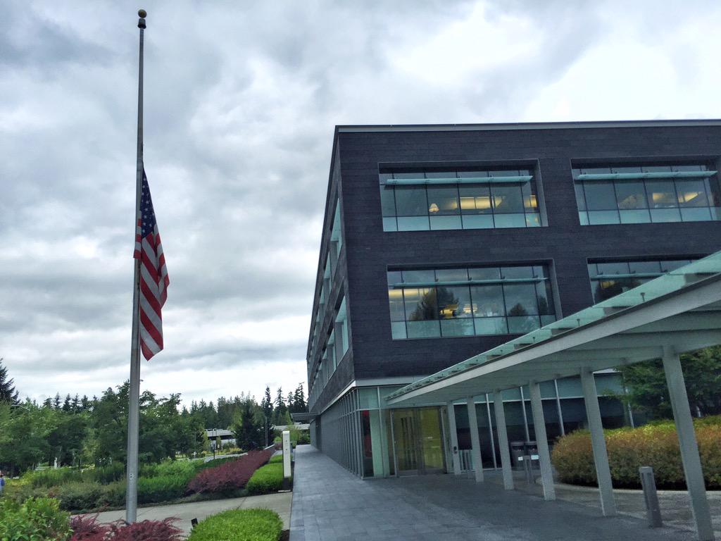 Nintendo payed tribute to Satoru Iwata today at its headquarters in Kyoto, Japan as well as at its home in North America. Flags are both buildings were lowered to half mast.