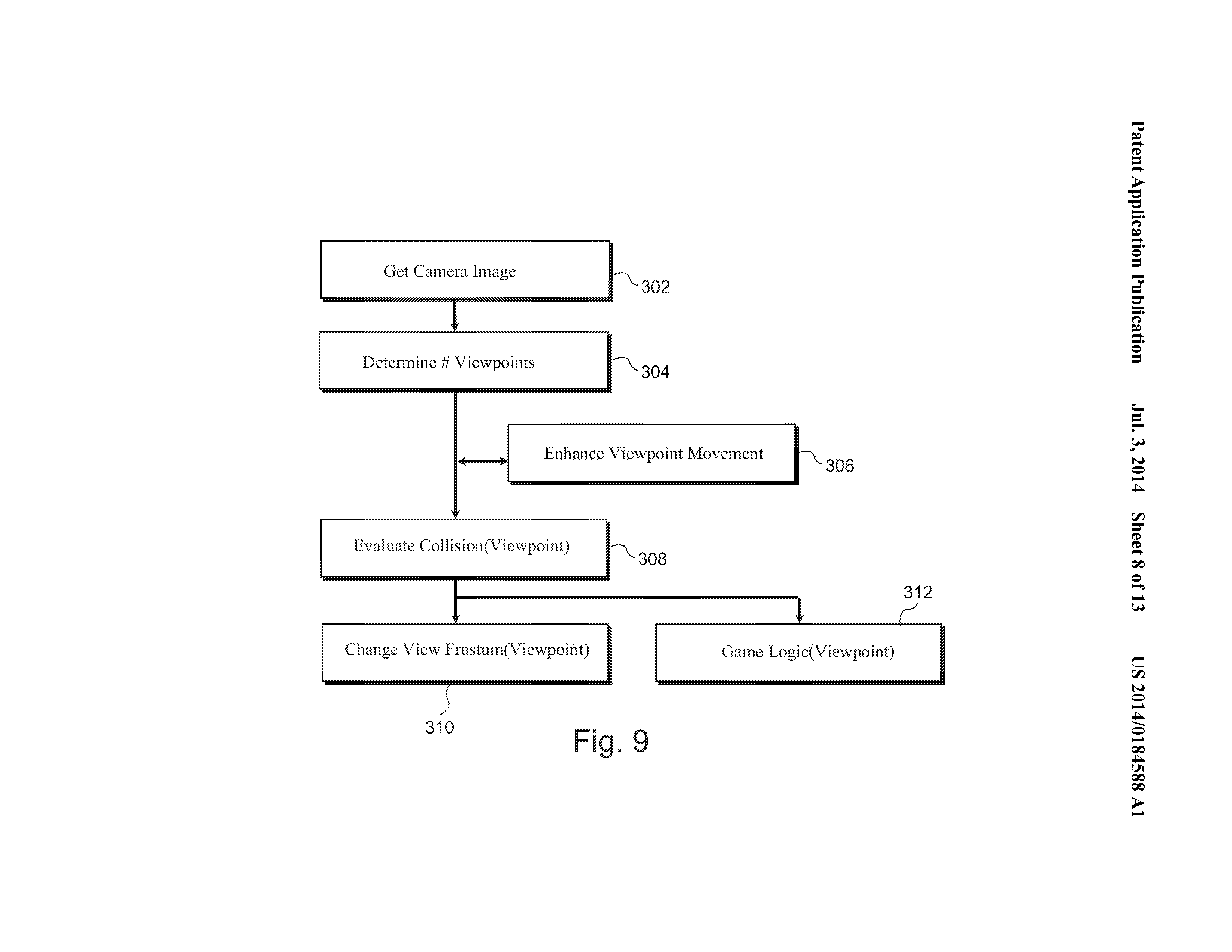 The exemplary illustrative non-limiting technology herein enables 3D viewing on conventional 2D displays such as home television sets by tracking a person’s viewpoint. Detecting a player’s viewpoint movement to change the viewing of the displayed object gives the illusion that the object is physically present in three-dimensional space. Viewpoint movement detection can provide collision-related game logic benefits such as allowing a player to dodge projectiles, giving a game character an ability to “see” the player when not behind line-of-sight obstacles, and other advantages.