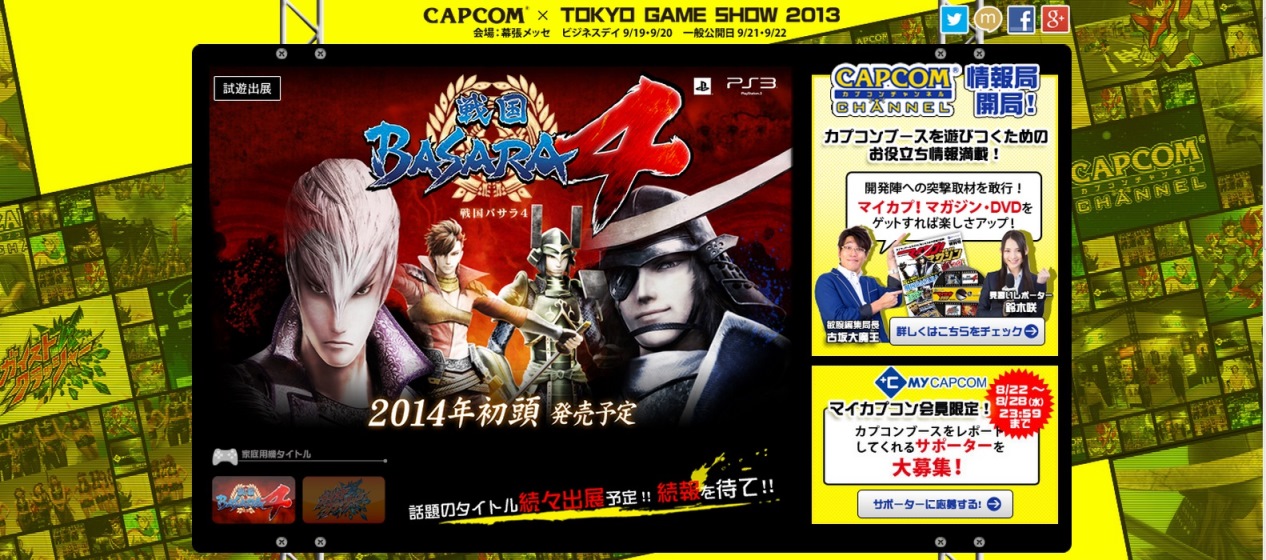 Capcom has confirmed two games for the Tokyo Game Show thus far. Gaist Crusher and Sengoku Basara 4 will both be playable at the expo next month.