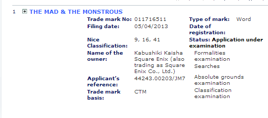 Square Enix registered a new trademark in Europe and also nabbed a domain name for something called “The Mad & The Monstrous”. Of course, no such title has been announced by the company thus far. Square Enix Japan is listed as the website’s holder for what it’s worth.