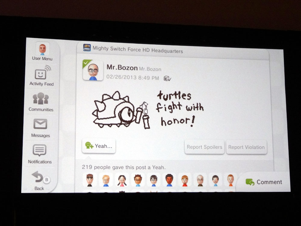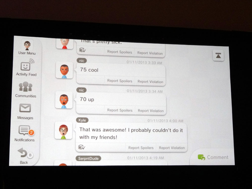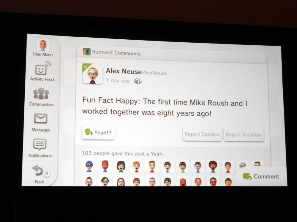 Photos/slides from Nintendo’s Miiverse GDC 2013 session