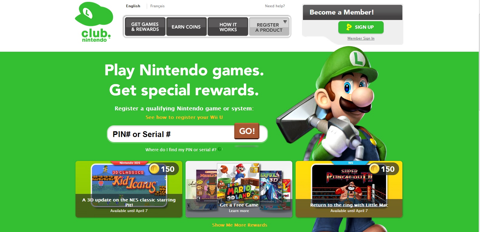 Access the rewards page here. Also be sure to view Club Nintendo’s temporary green makeover!