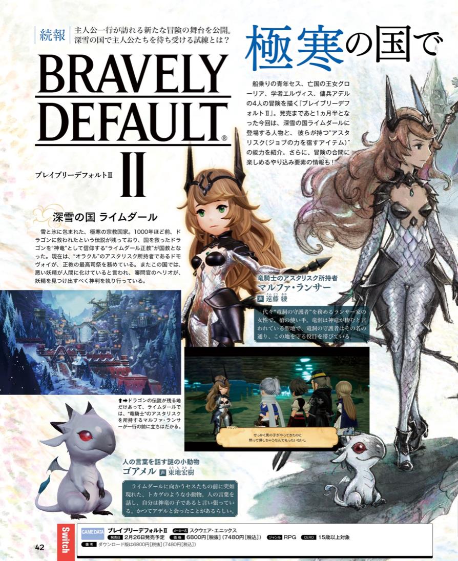Bravely Default II, which was first announced in December 2019, is slated for February 26 on Switch worldwide. The RPG was previously planned for a 2020 release.