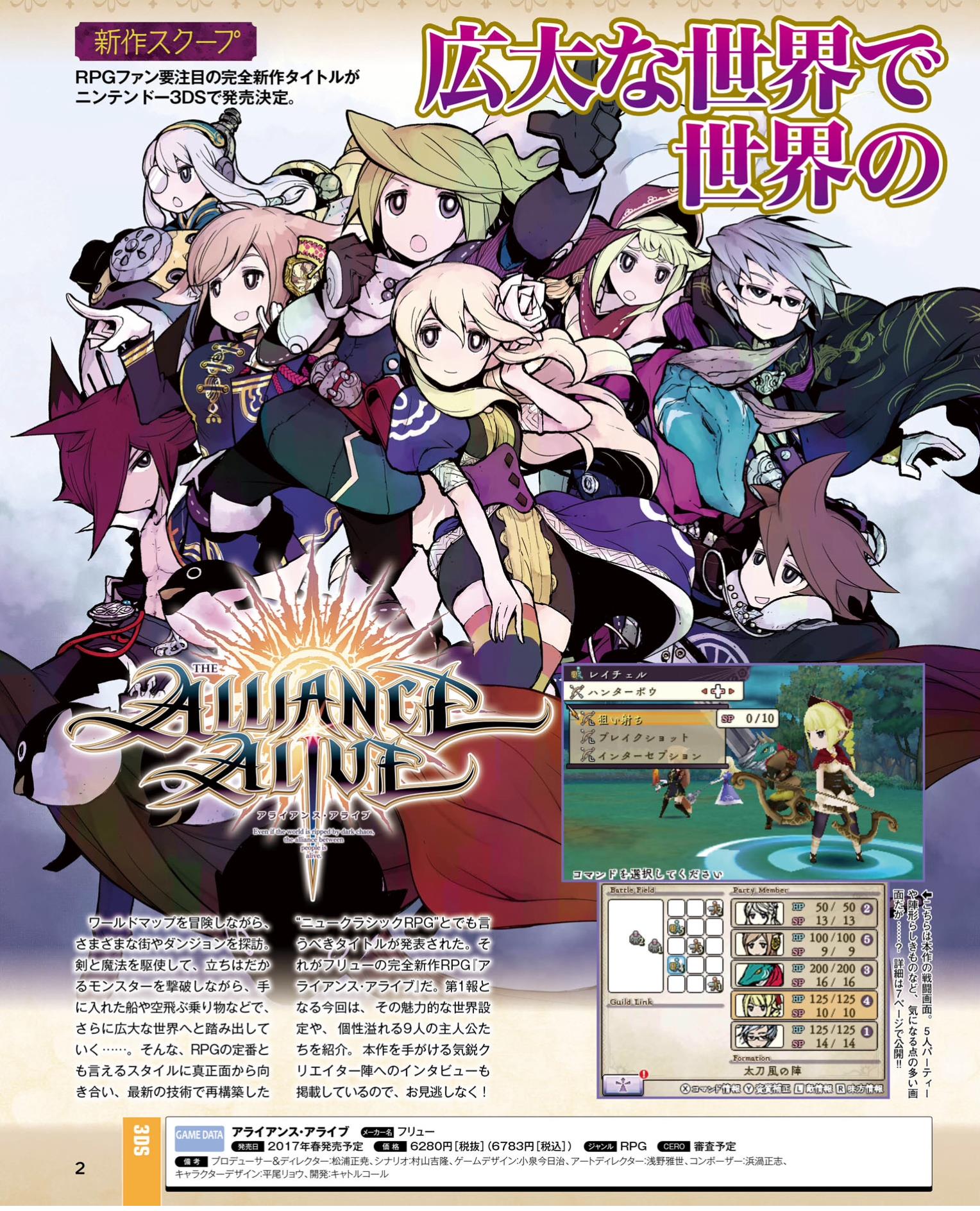 This week’s Famitsu scans are now available. Highlighted games include The Alliance Alive, Attack on Titan: Escape from Certain Death, RPG Maker Fes, Pokemon Sun/Moon, and Yo-kai Watch 3: Sukiyaki. Scans of all titles can be found below.