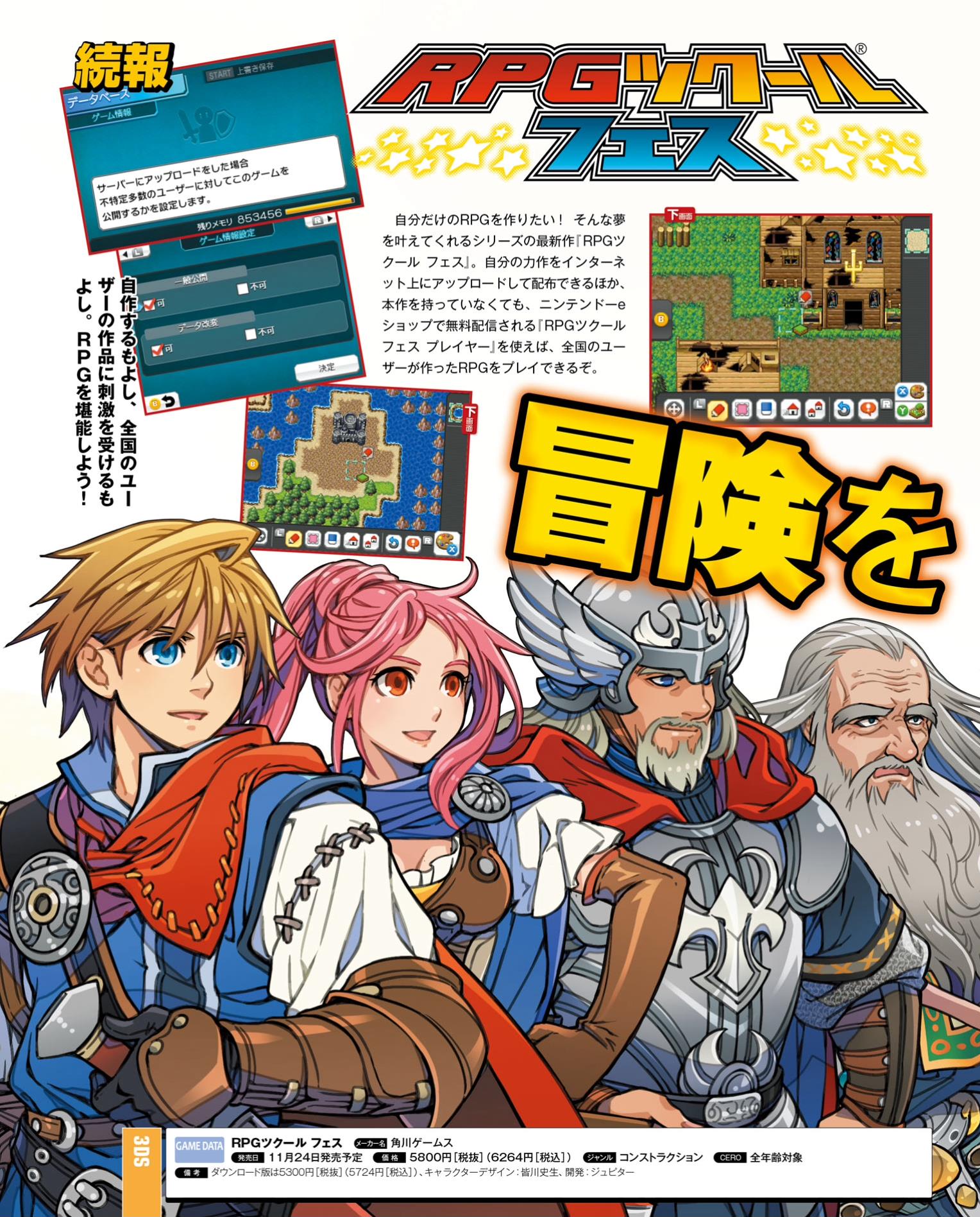 This week’s Famitsu scans are now available. Highlighted games include RPG Maker Fes, All Kamen Rider, and Monster Hunter Stories. Scans of all titles can be found below.
