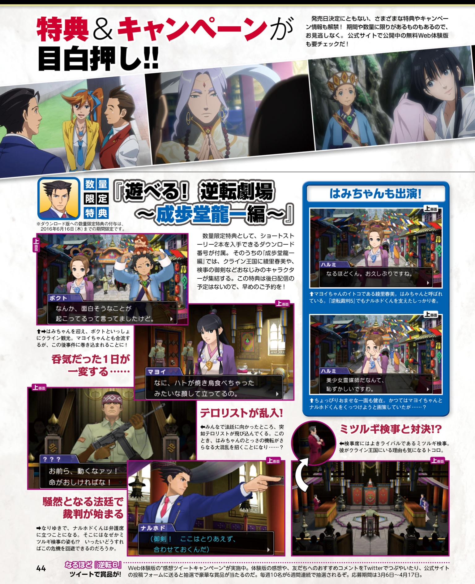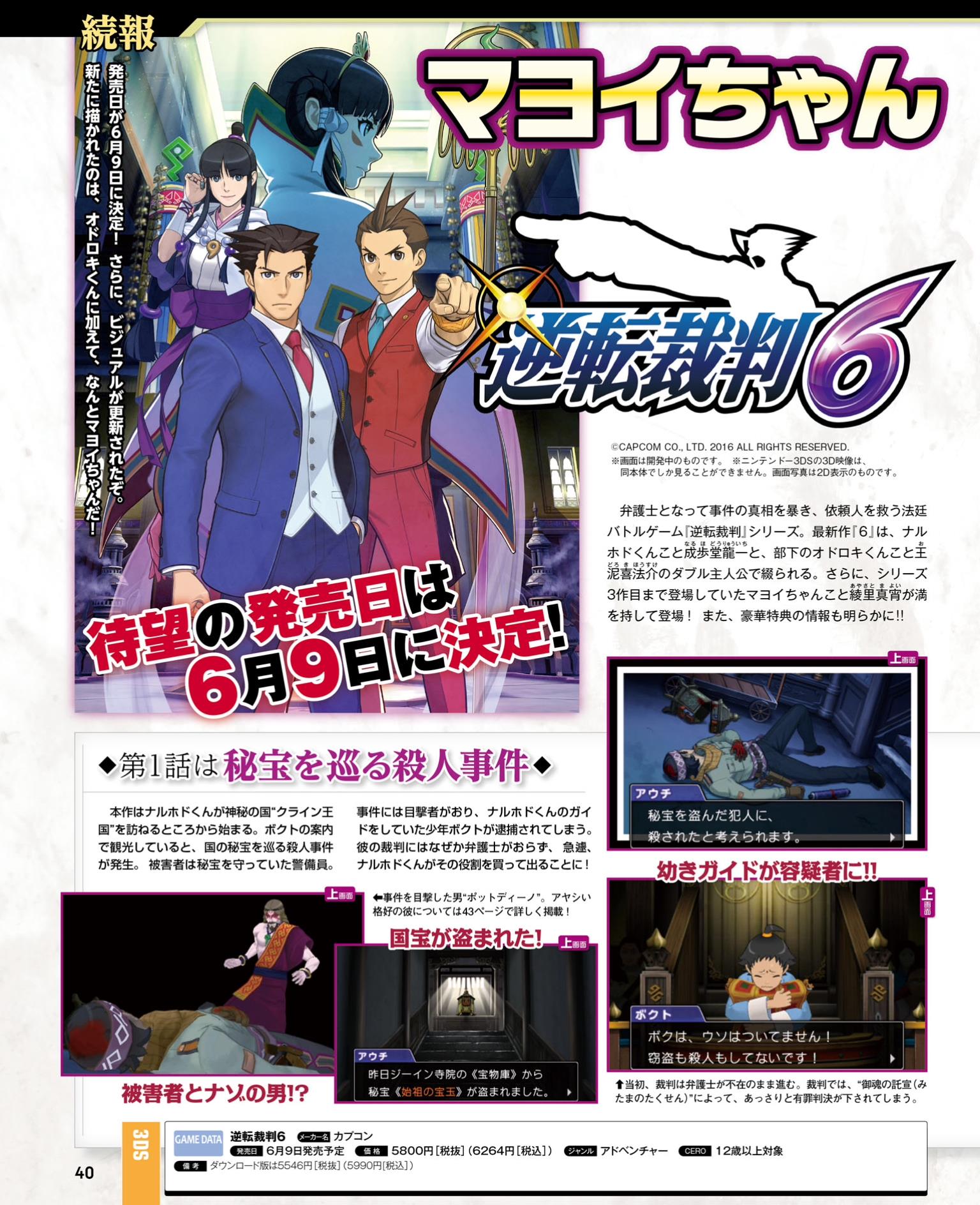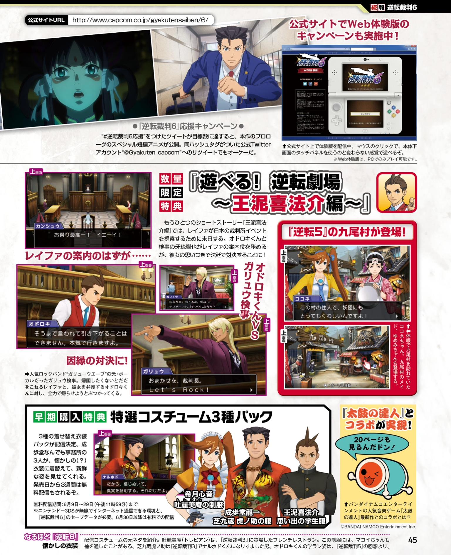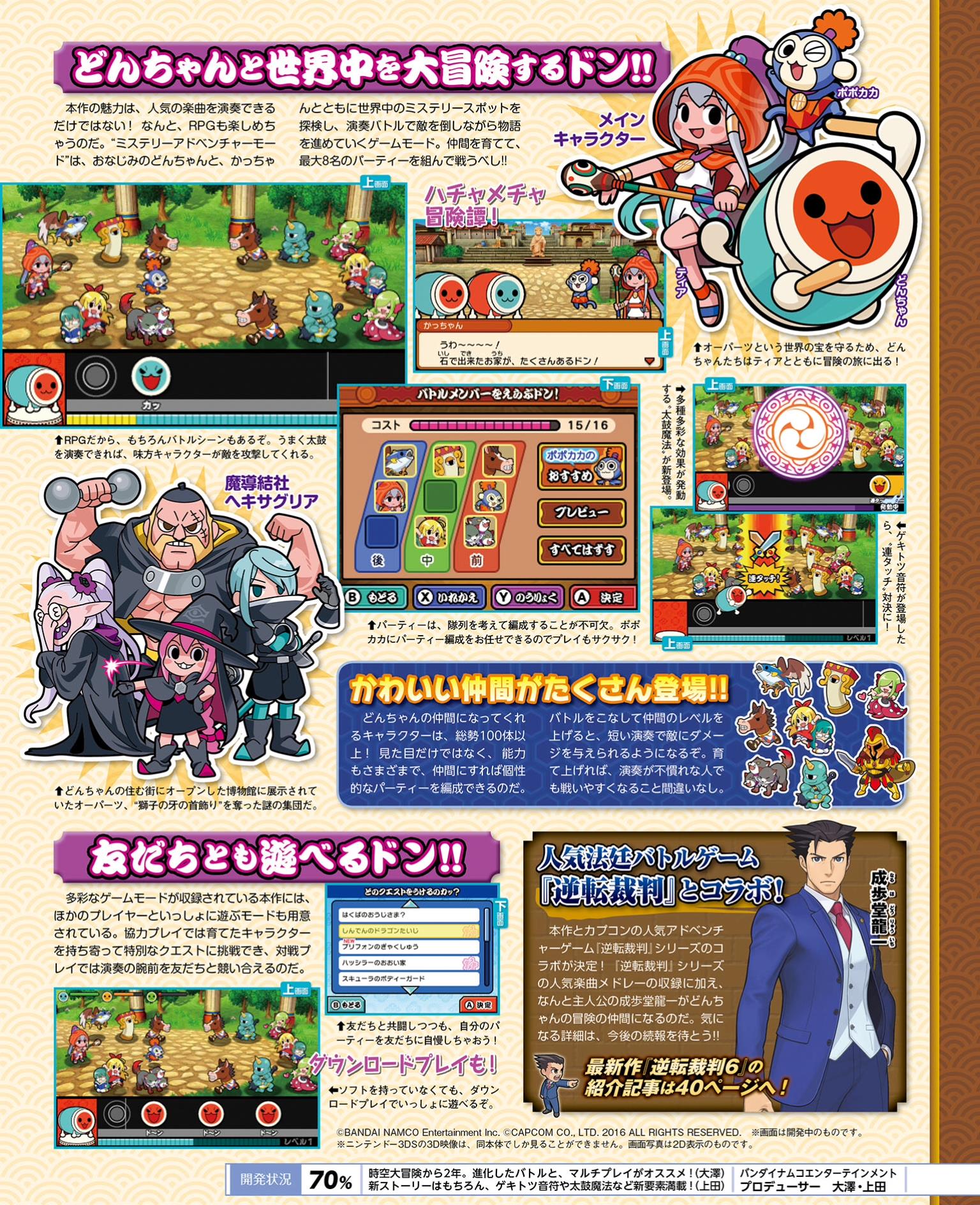 This week’s Famitsu scans are now available. Highlighted games include Ace Attorney 6, Dragon Quest Monsters: Joker 3, Medabots Girls Mission, Taiko Drum Master: Dokodon! Mystery Adventure, and Zero Time Dilemma. Scans of each title can be found in the gallery below.