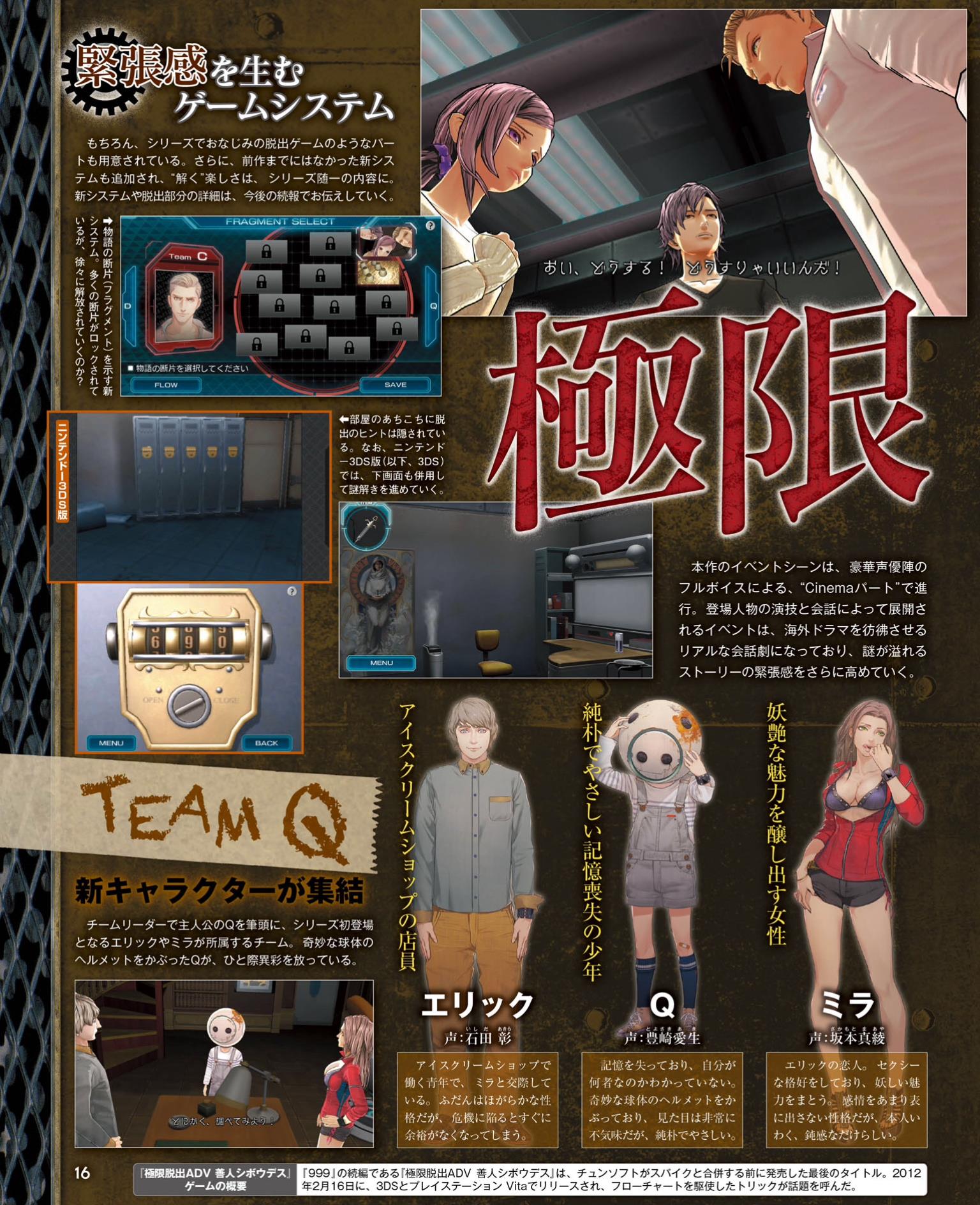 Famitsu has posted the first direct-feed screenshots from Zero Time Dilemma. Find them in the gallery below.