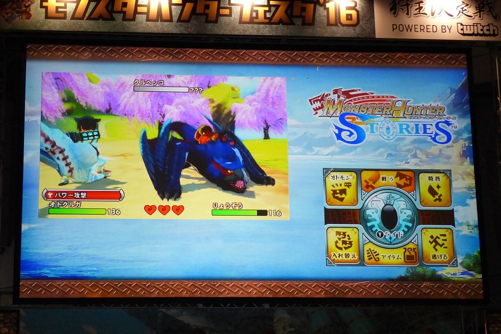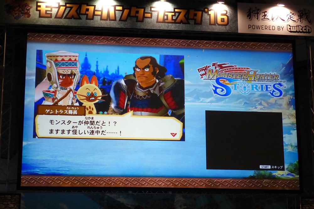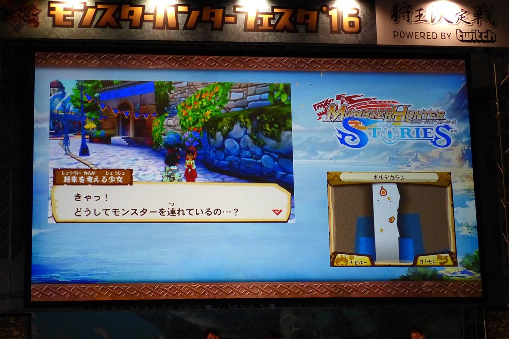 Japanese websites also have some photos up of Monster Hunter Stories from Monster Hunter Festa this past weekend where the game received a new trailer (and apparently an on-stage demo). Find some off-screen images below.