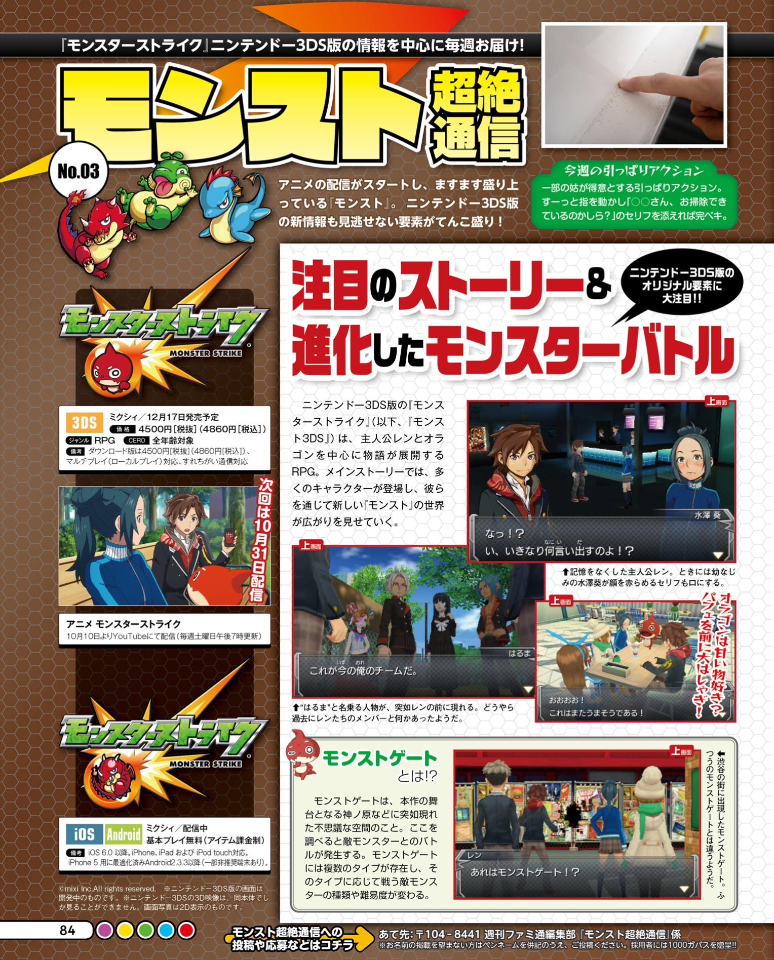 This week’s Famitsu scans are now available. Highlighted games include Dragon Quest Monsters: Joker 3, Monster Hunter X, and Monster Strike. Scans of each title can be found in the gallery below.