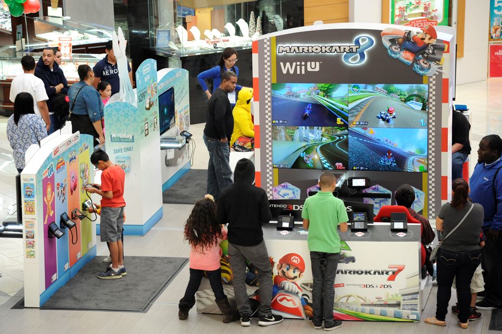 In this photo provided by Nintendo of America, kids play some of Nintendo’s hottest video games on Wii U and Nintendo 3DS/2DS during the company’s “Holiday Mall Experience” inside the Westfield Culver City mall in Los Angeles on Nov. 24, 2014. The free experience is open until Dec. 21, 2014, in 16 major cities nationwide and showcases must-have holiday games such as Super Smash Bros. for Wii U, Mario Kart 8, Pokémon Omega Ruby, Pokémon Alpha Sapphire and Captain Toad: Treasure Tracker among others. (Photo by Nintendo/Bob Riha, Jr.)