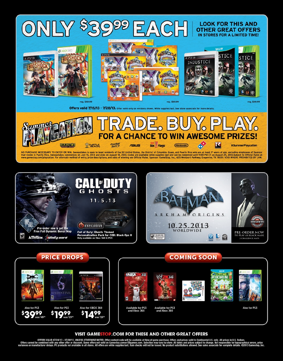 This week’s GameStop ad is now live. Highlights include Injustice: Gods Among Us and Skylanders Giants for $40.