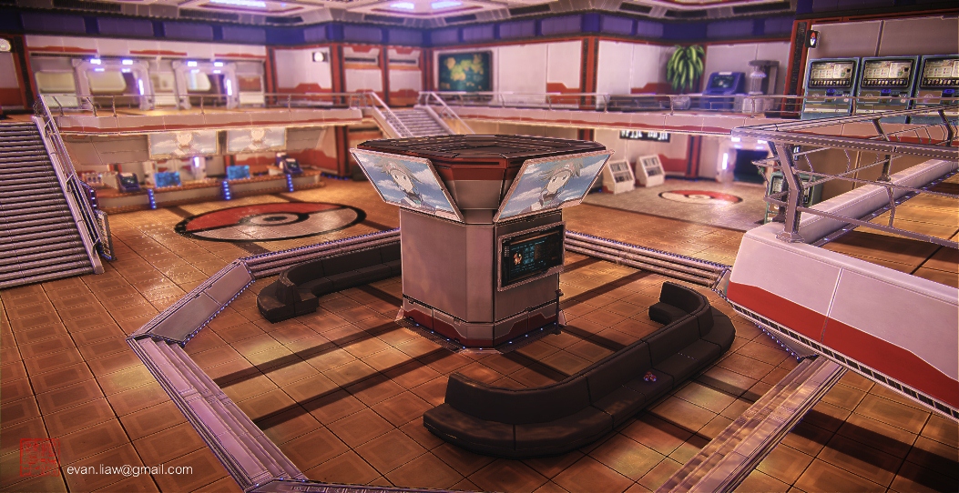 And that’s where environment artist Evan Liaw comes in. Liaw, who previously worked on Red Orchestra 2: Heroes of Stalingrad, has recreated one area from the series in a modern-looking 3D world. Liaw made a number of Pokemon Center images, all of which are rendered in UDK.