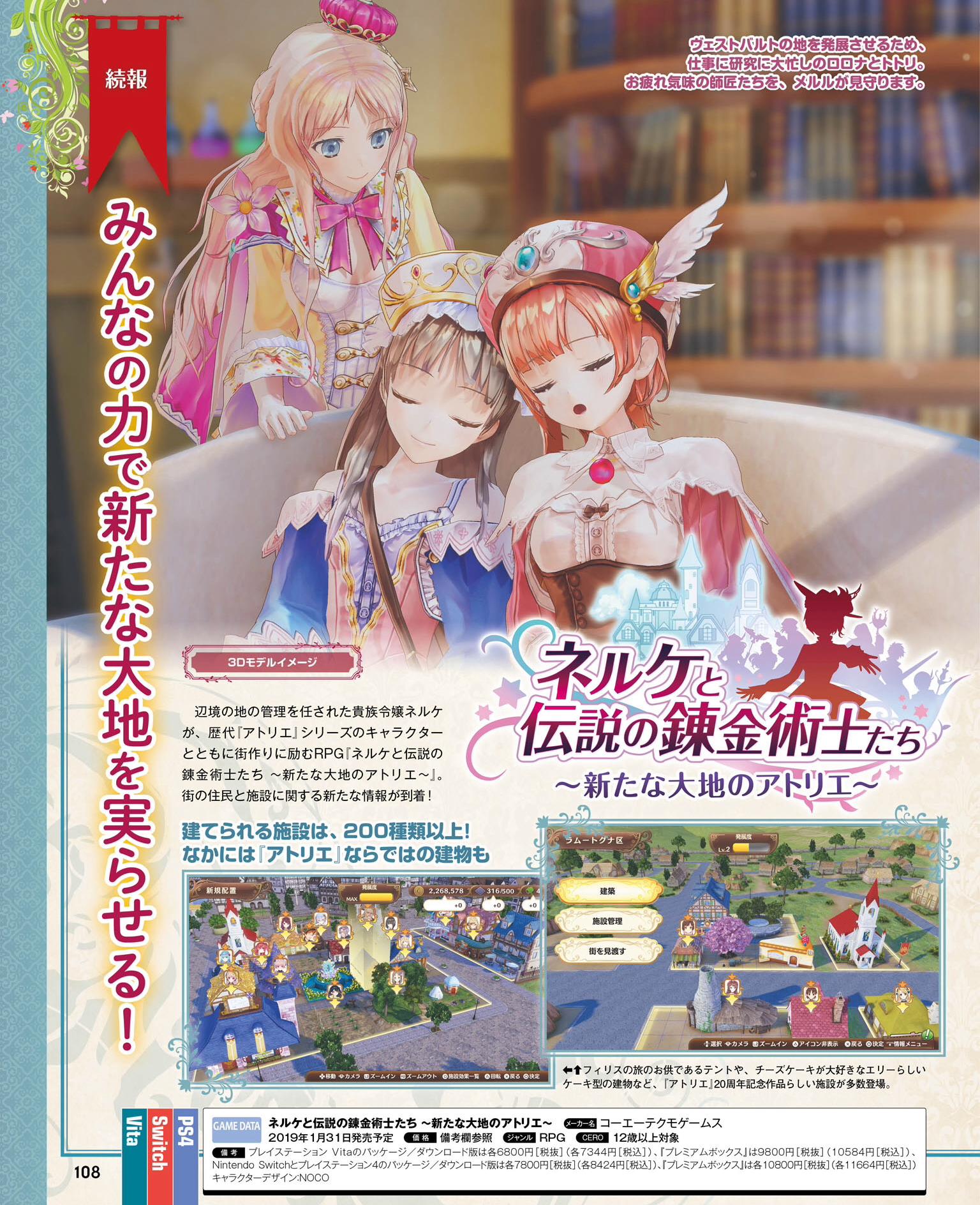 This week’s Famitsu scans are now available. Highlights include Girls und Panzer: Dream Tank Match DX, Super Smash Bros. Ultimate, and Nelke & the Legendary Alchemists. Scans of all games can be found below.