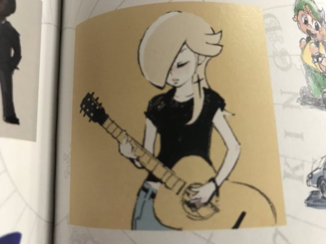 First, one image from the book shows Rosalina as a guitarist. Continuing with the Super Mario Odyssey theme here, we’re also able to see a Luma costume for Mario left on the cutting room floor.