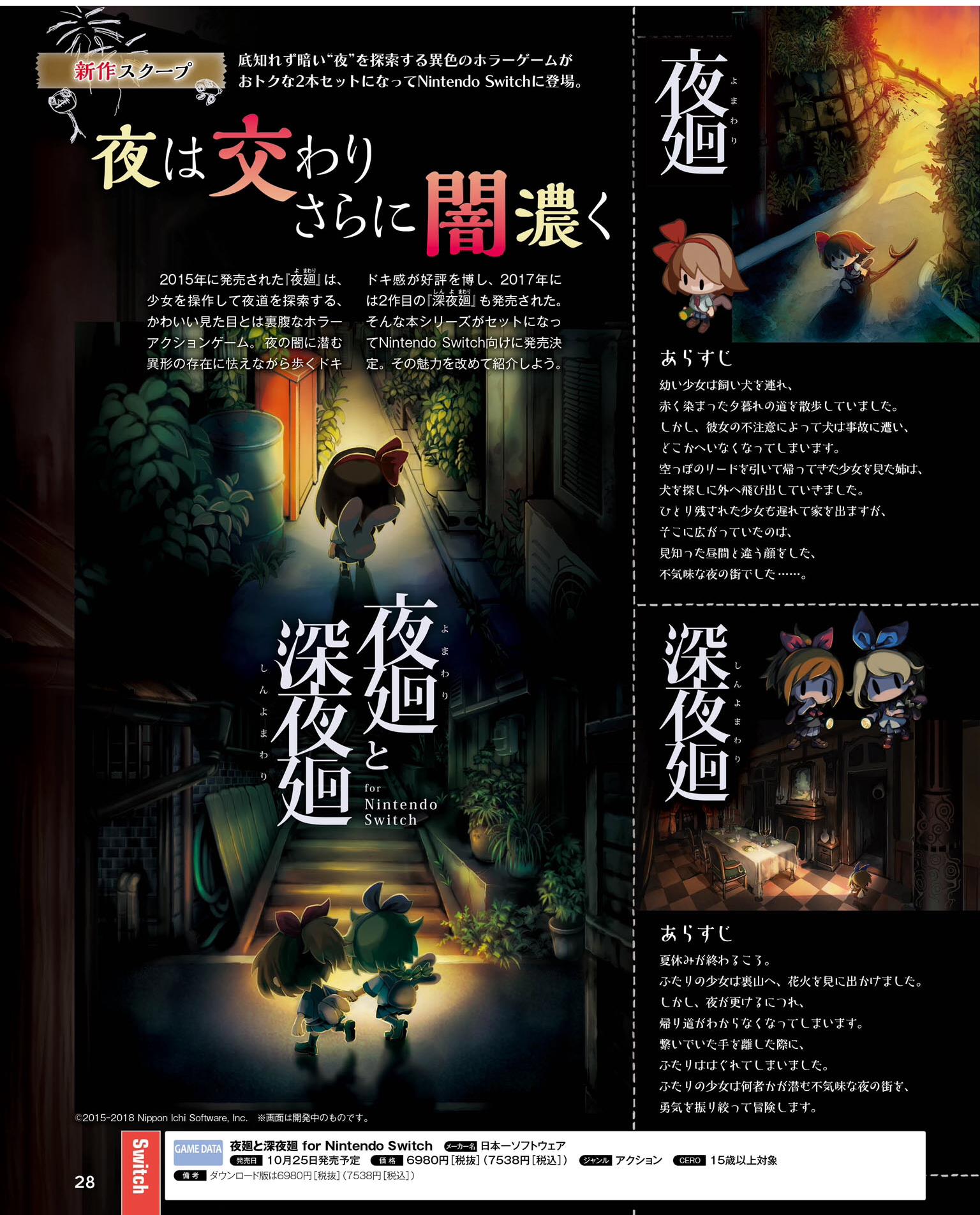 This week’s Famitsu scans are now available. Highlights include Smash Bros. Ultimate, Yomawari: The Long Night Collection, Mega Man 11, Warriors Orochi 4, and Work x Work. Scans of all games are below.