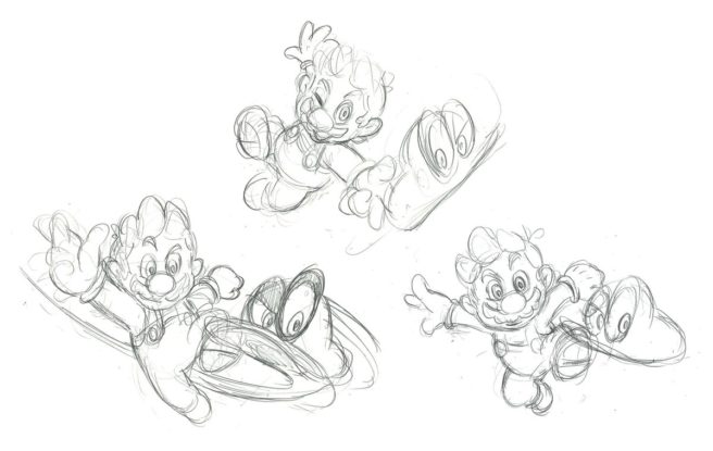 Nintendo has posted a couple of pieces of concept art from Super Mario Odyssey. The first photo, pictured above, features rough sketches of both Mario and Cappy. Meanwhile, the image below has a few looks at Cappy alone.
