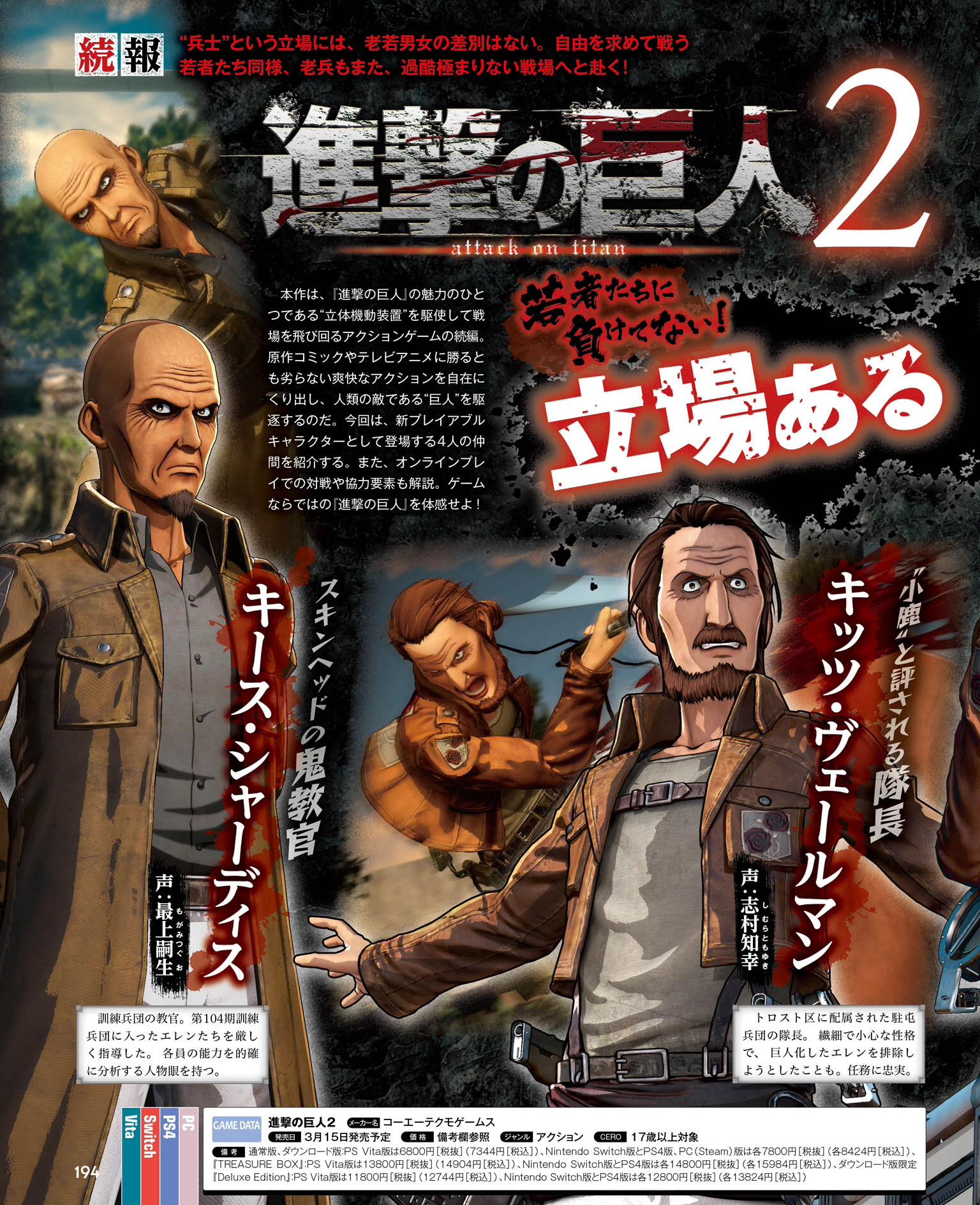 This week’s Famitsu scans are now available. Highlights include Happy Birthdays, Attack on Titan 2, and Your Four Knight Princess Training Story. Scans of all games are below.