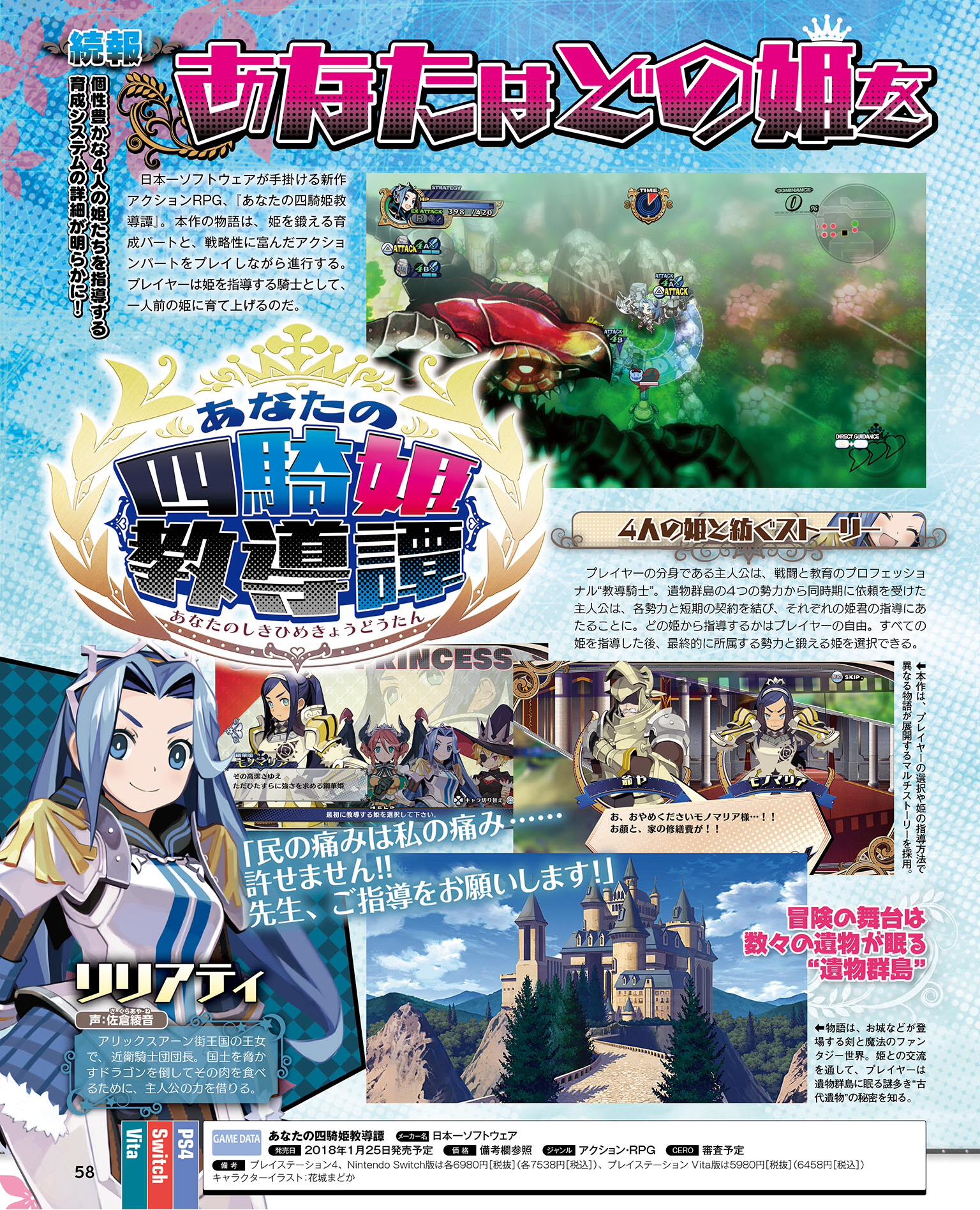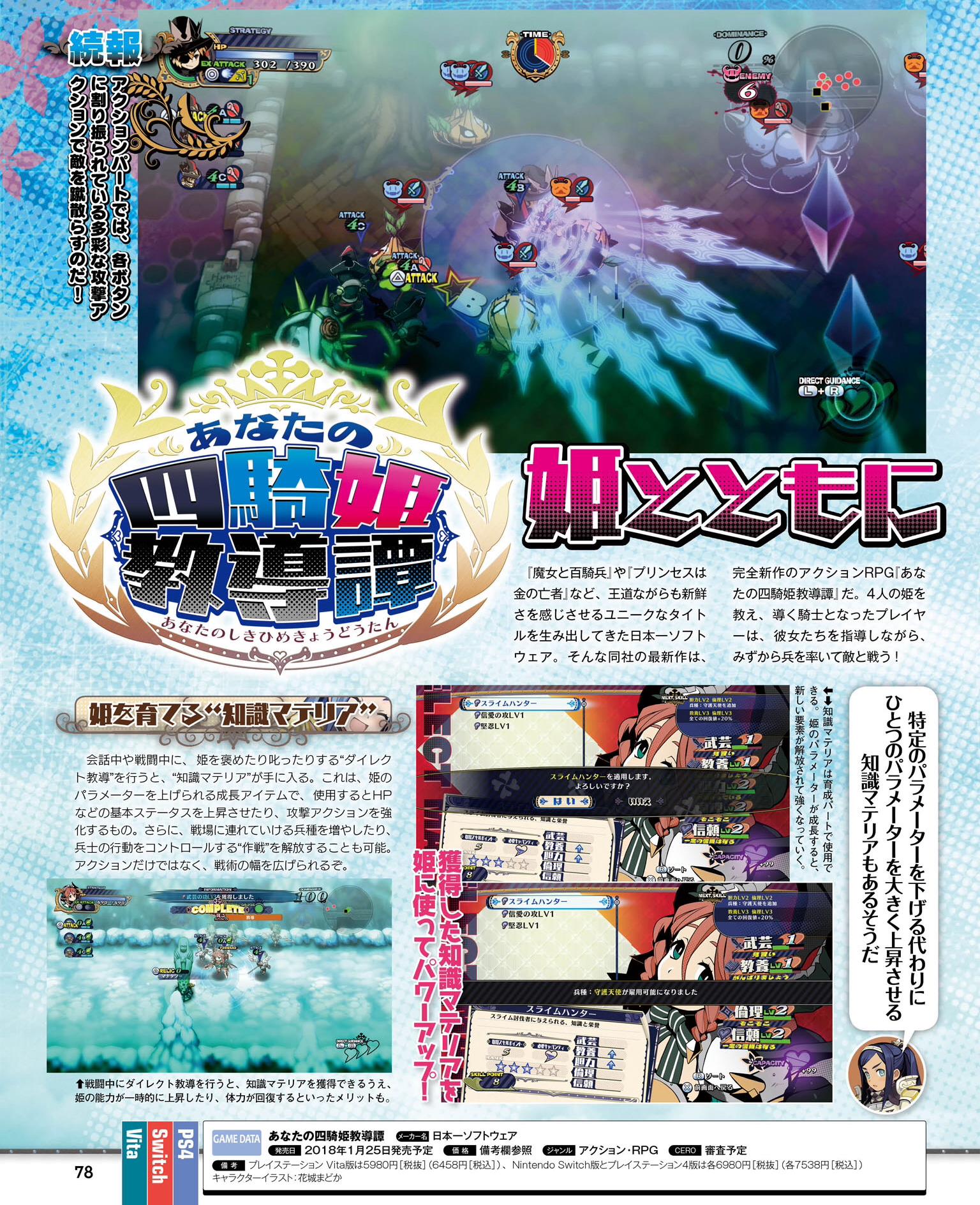 This week’s Famitsu scans are now available. Highlights include Your Four Knight Princess Training Story, Xenoblade Chronicles 2, Creeping Terror Re, and Star Ghost. Scans of all games are below.