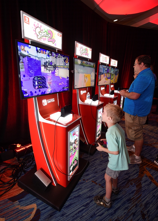 In this photo provided by Nintendo of America, Ian G. of Chula Vista, CA. gets an early hands-on demo of the Splatoon 2 game at the Nintendo Lounge during San Diego Comic-Con. Splatoon 2 launches on July 21 exclusively for the Nintendo Switch system.
