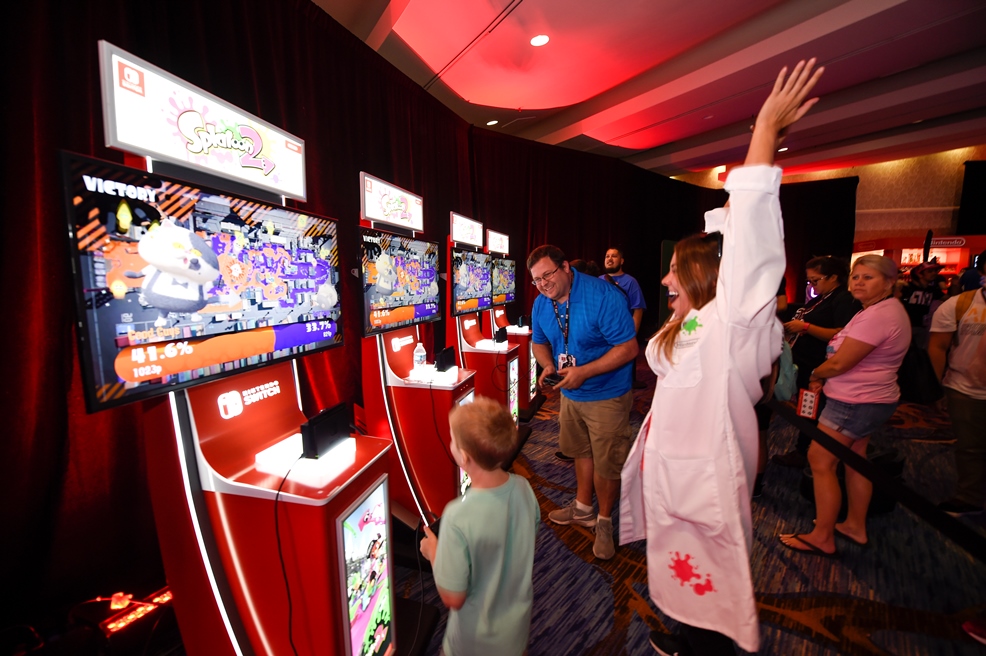 Nintendo passed along some photos showing Splatoon 2 cosplay and its gaming lounge at the San Diego Marriott Marquis & Marina. Find the images below along with descriptions of each one.