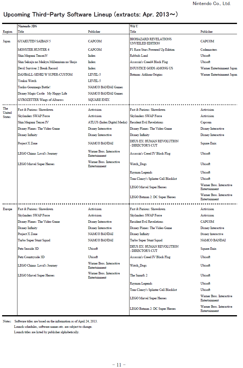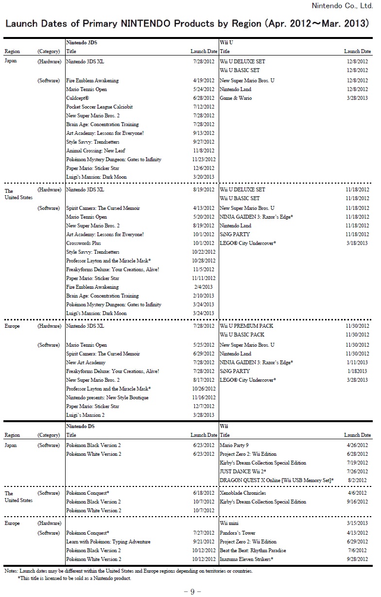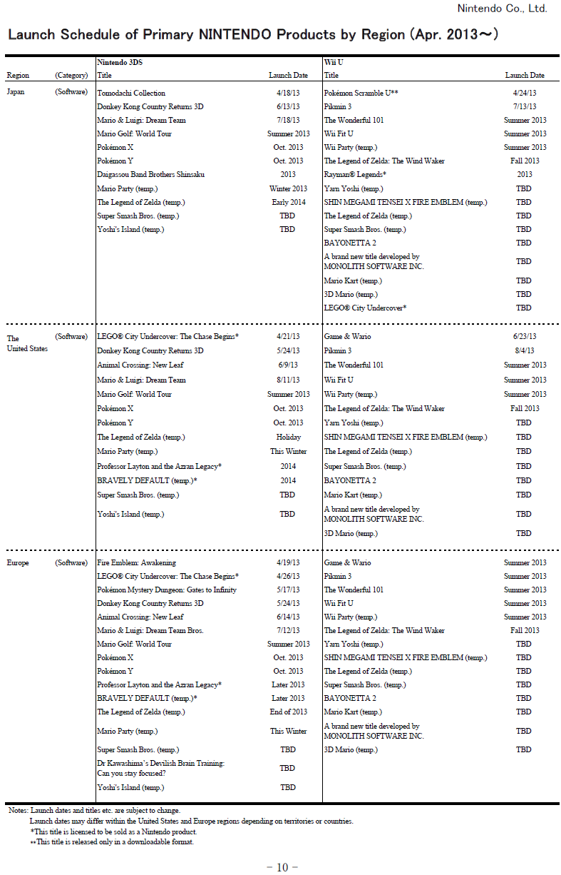 Nintendo release schedule – April 2013 – Wonderful 101 in summer, Monolith Wii U game for the west