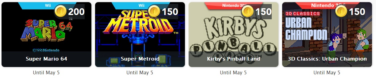 This month’s digital rewards on Club Nintendo have gone live. Members can choose from Super Mario 64 (Wii, 200 coins), Super Metroid (Wii, 150 coins), Kirby’s Pinball Land (3DS, 150 coins), and 3D Classics: Urban Champion (3DS, 150 coins). These items last through May 5.