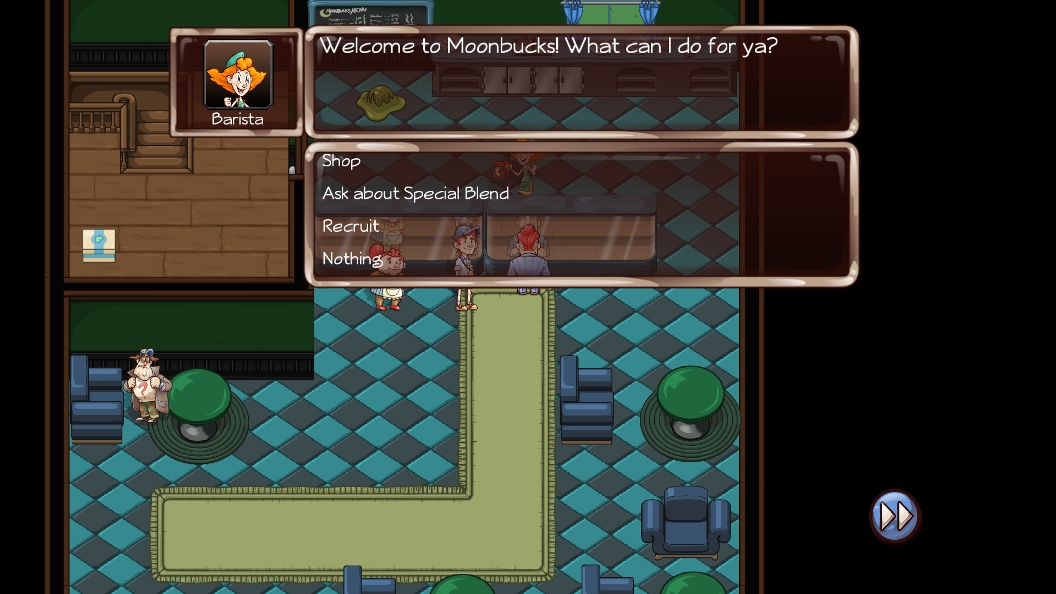 – The Barista that works at Moonbucks can scald enemies with boiling hot coffee in battle and sells pick me up power ups at the coffee shop