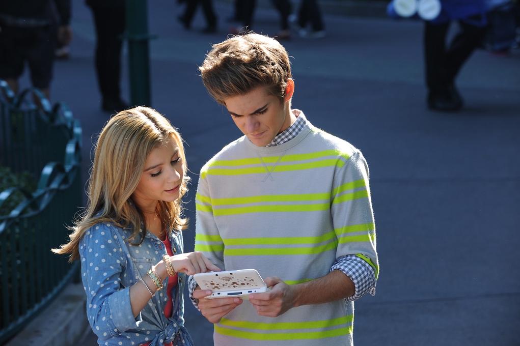 In this photo provided by Nintendo of America, actor G Hannelius, currently starring in the Disney Channel sitcom Dog With A Blog, films a promo for the new Disney Magical World game with actor Cole Pendery at the Downtown Disney® District last month. Disney Magical World launches exclusively for the Nintendo 3DS family of systems on April 11. Cole is holding the new Mickey Edition Nintendo 3DS XL system that will be available at Wal-Mart and the Nintendo World store.