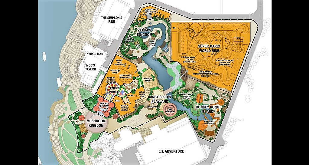 – General layout and original entrance to Super Nintendo World shown