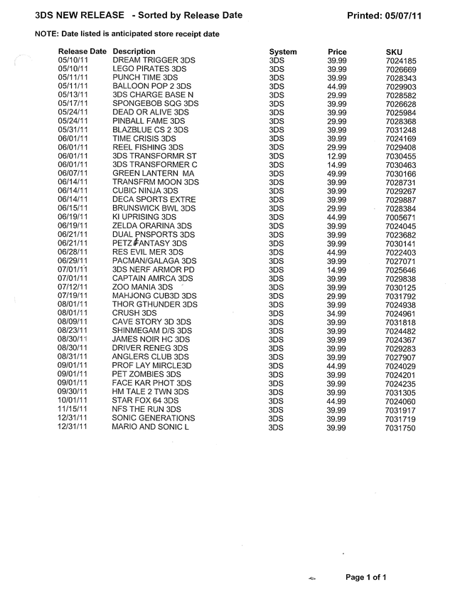 It’s also worth making note of two other inclusions on GameStop’s release lists. A Time Crisis game is listed for the 3DS, as is Sonic Generations. The latter seems like it could certainly be in the works based on the fact that SEGA revealed they were making a game starring the blue hedgehog for the 3DS at last year’s E3. No announcement has been made about a Time Crisis title for the handheld, but perhaps Namco Bandai is gearing up for a reveal next month. Then again, it could be a simple error…