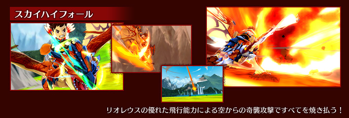 – Rathian flies high into the air, blowing fire down towards the enemy as it crashes down on it; damages a wide area