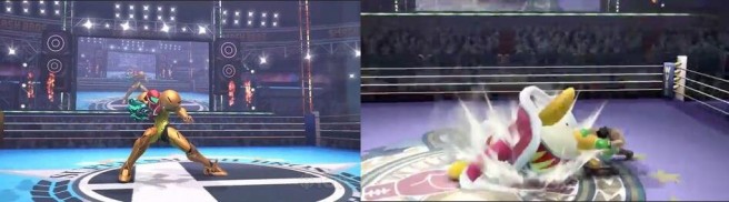 It looks like the Boxing Ring in Super Smash Bros. for Wii U and 3DS has received an update. With Little Mac now confirmed as a playable character, the ring has changed the Smash Bros. logo to the WVBA (World Video Boxing Association) logo. If you’re not sure what we’re talking about here, check out the comparison above.
