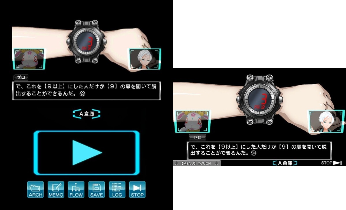 The comparisons above are making the rounds on some Japanese sites today. This is really our first look at how the 3DS/Vita versions of Extreme Escape Adventure: Good People Die compare. The 3DS images are on the left while the Vita screenshots are on the right.