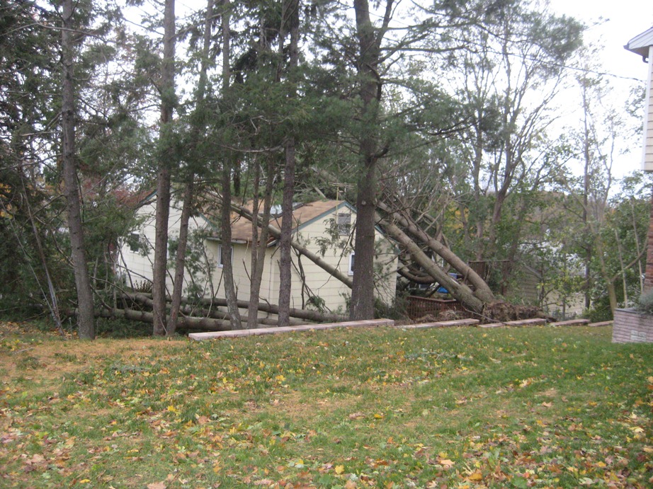 That’s across the street here. A huge tree fell over and sprawled itself over the driveway, so the people inside this house were stuck inside (basically) until it was chopped up and removed.