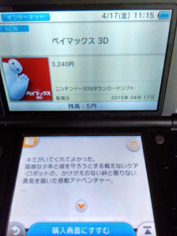 Big Hero 6 is the latest downloadable movie for 3DS systems in Japan. The film, which costs 3,240 yen, just came out today. Of course, 3D is supported!